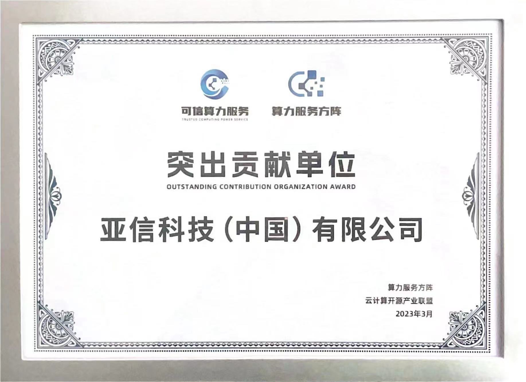2023年3月 304am永利集团荣获“可信算力服务算力服务方阵突出贡献单位”