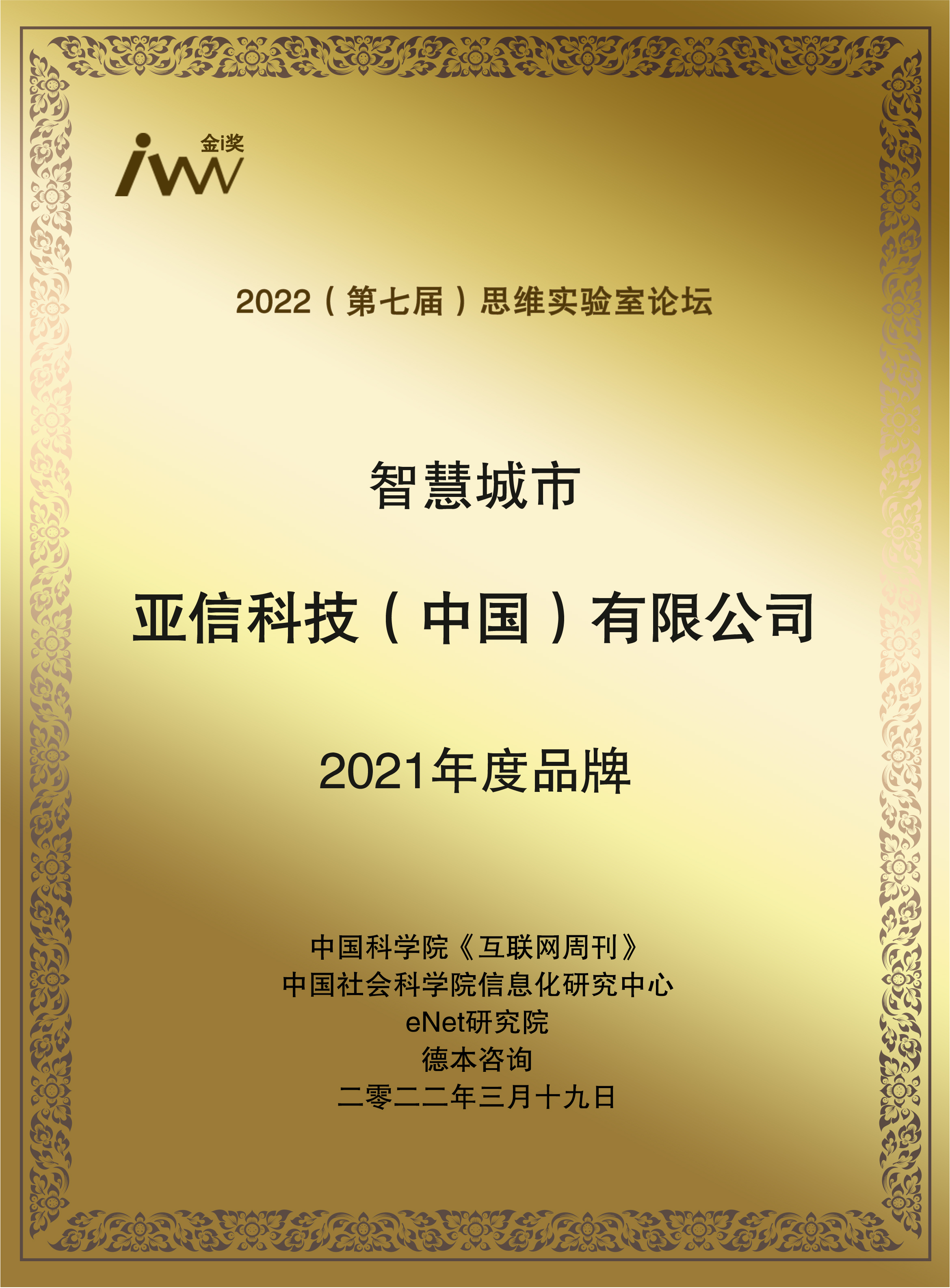 2022年3月 304am永利集团获“智慧城市2021年度品牌奖”