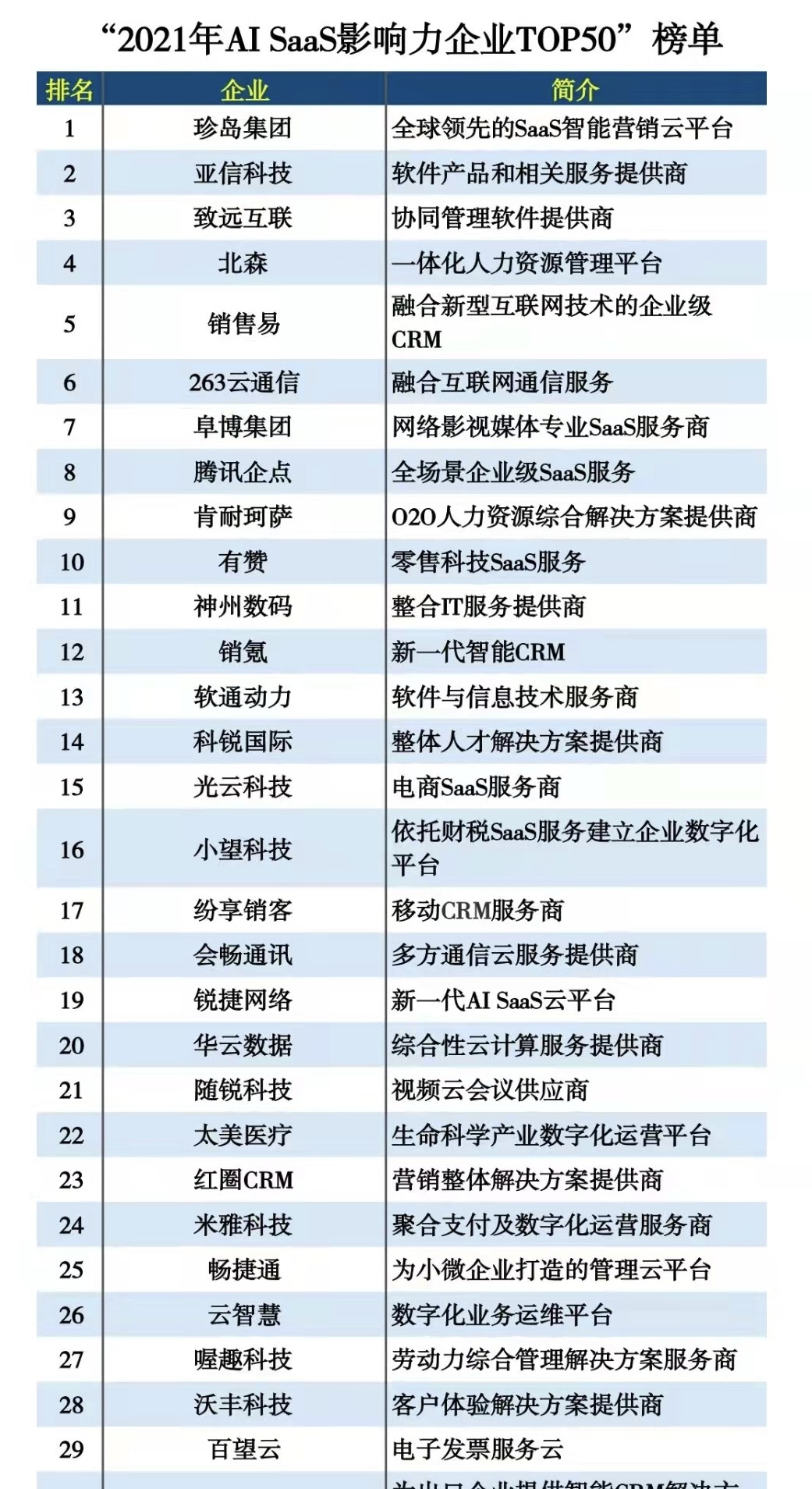 2021年9月 304am永利集团荣获“AI SaaS影响力企业TOP50”