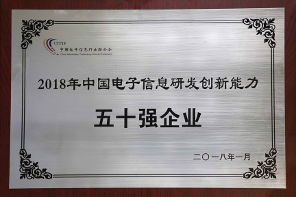 2018年1月304am永利集团2018年中国电子信息研发创新能力五十强企业