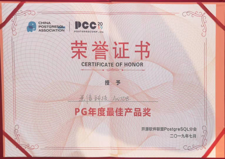 2019年7月 304am永利集团AntDB荣获“PG年度最佳产品奖”