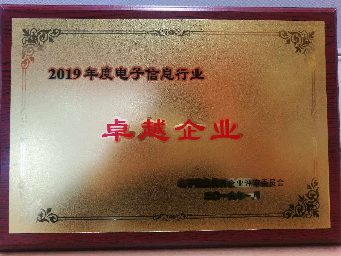2019年1月 304am永利集团荣获“2019年度电子信息行业卓越企业”