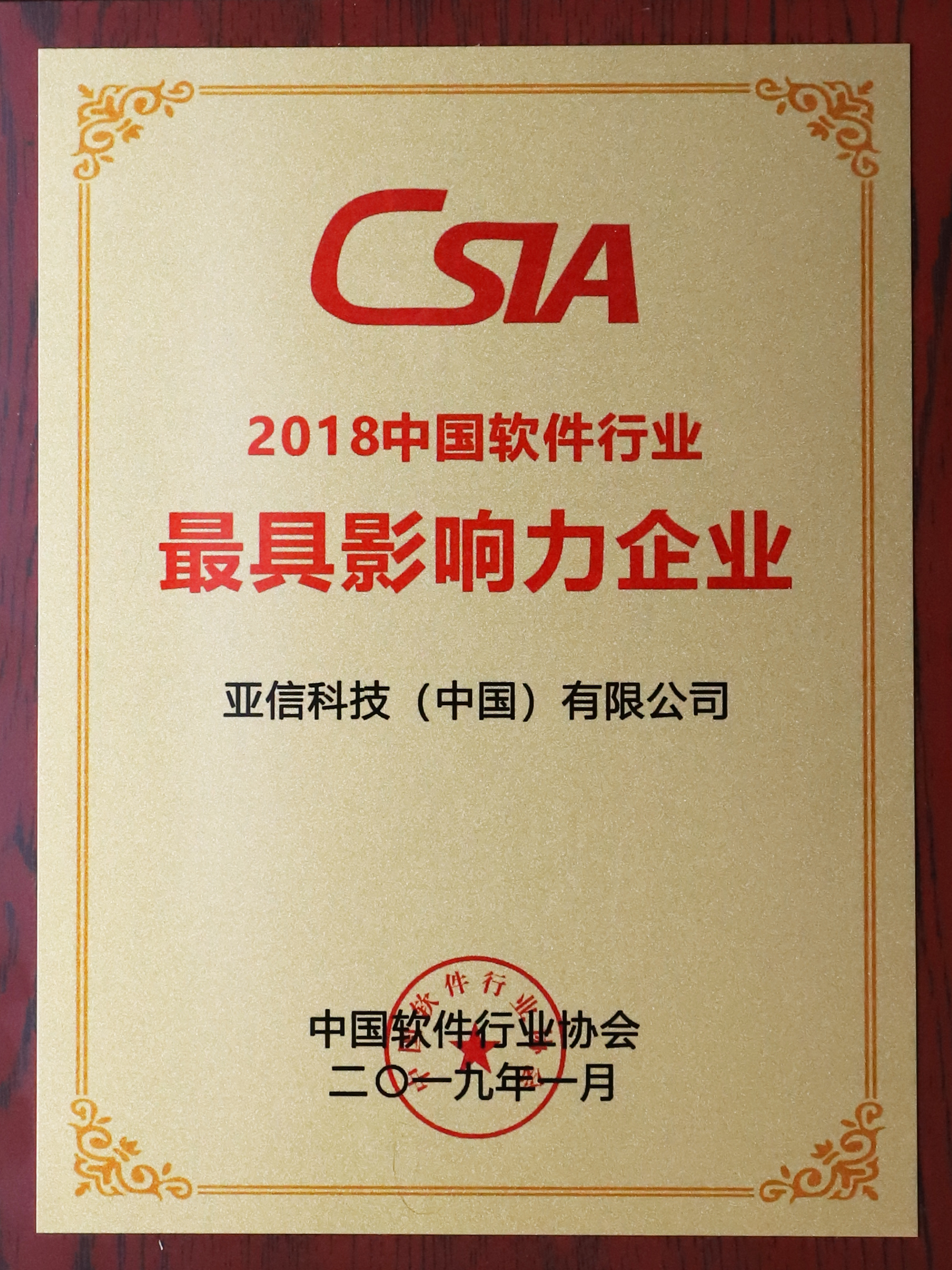 2018年1月亚信软件入选“2017年中国最具影响力软件和信息服务企业”