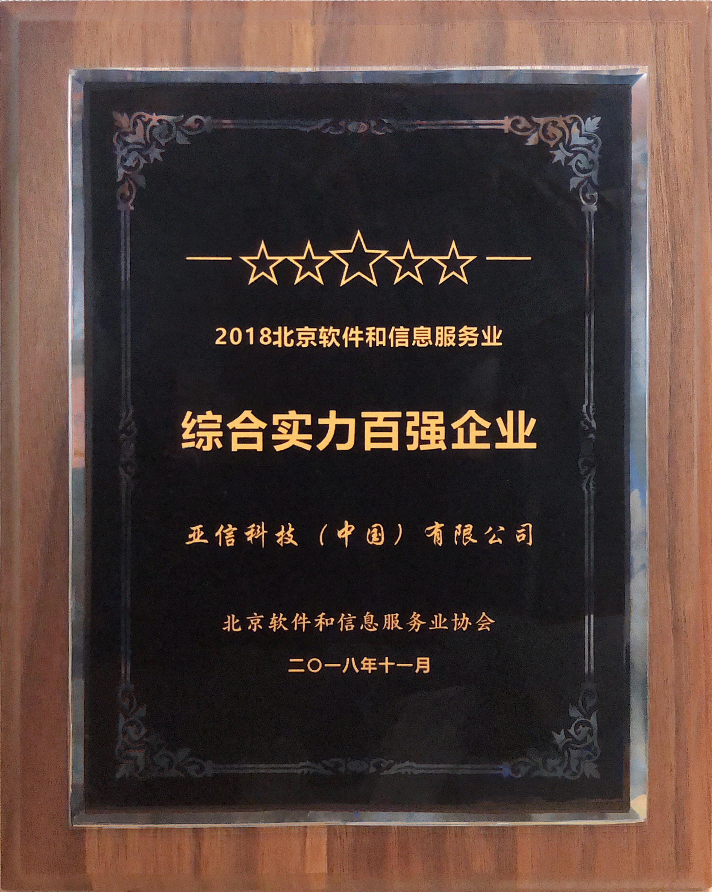 2019年11月 304am永利集团荣获“2019北京软件和信息服务业综合实力百强企业”