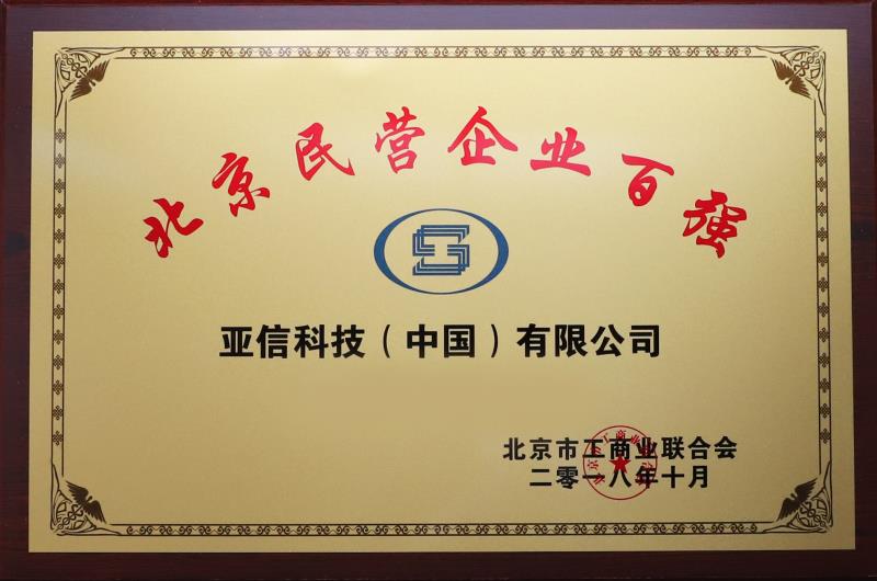 2018年10月 304am永利集团荣获“北京民营企业百强”