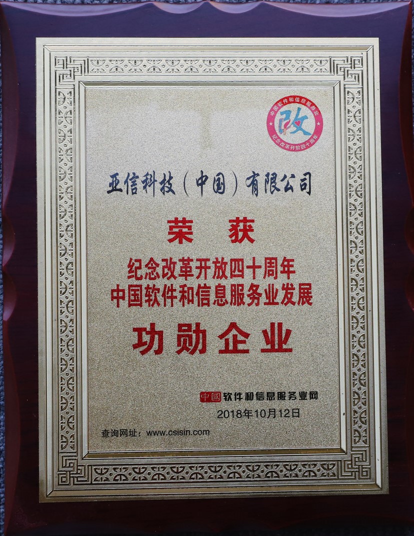 2018年10月 304am永利集团荣获“纪念改革开放四十周年中国软件和信息服务业发展功勋企业”